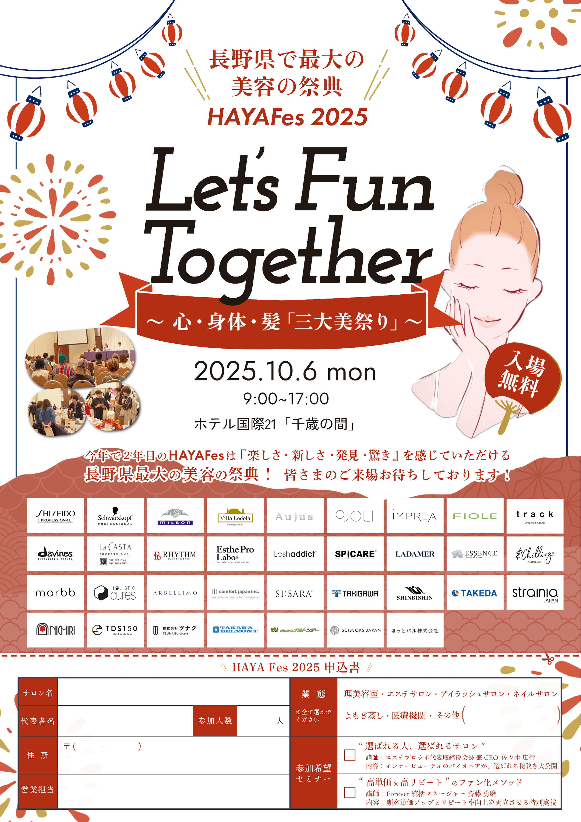 2025年10月6日(火)ホテル国際21で開催される「HAYA Fes 2025」、ぜひ多くのサロン様ご参加をお待ちしております!
