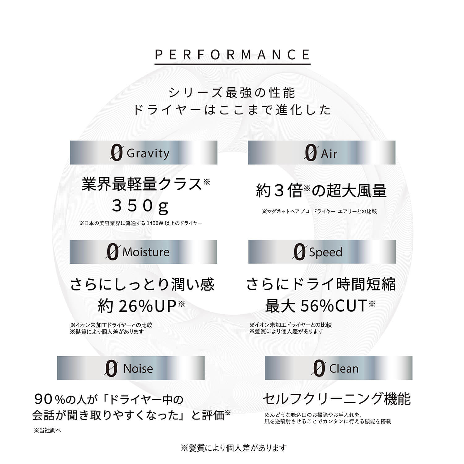 ■0Noise. 90%の人が「ドライヤー中の会話が聞き取りやすくなった」と評価※3